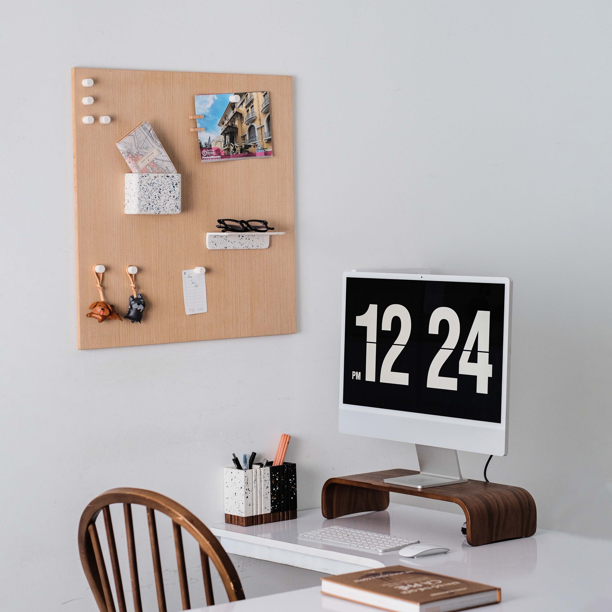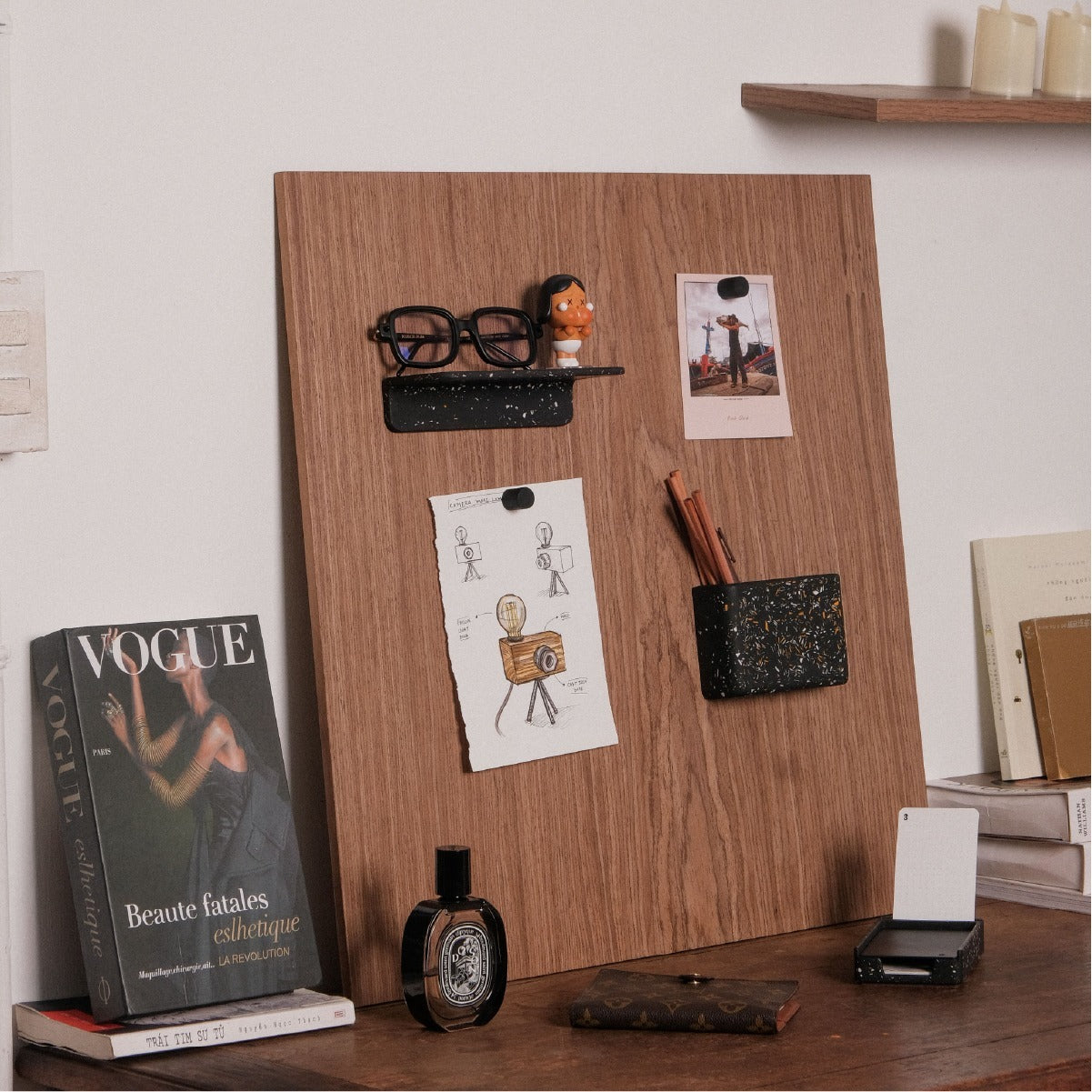 Each product features a Jesmonite tray and a wooden base, both handcrafted with meticulous attention. The tray is carefully molded, colored, and finished to a smooth, flawless surface, then laser-engraved and paired with a cork base. The wooden base is precision-shaped, sanded, and treated for durability and elegance. Every detail reflects refined craftsmanship and a commitment to quality.