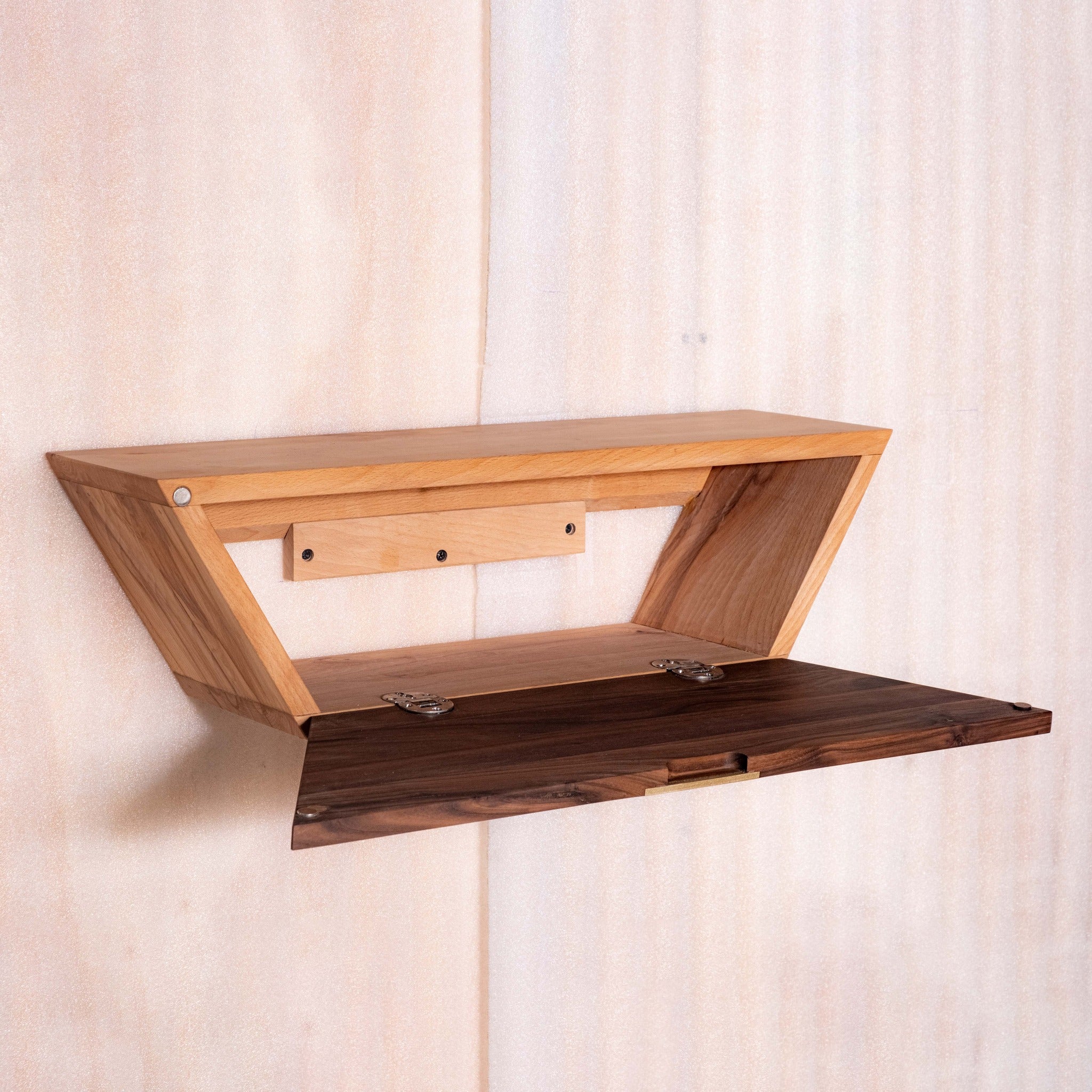 The Floating Slant Cabinet combines sculptural design with thoughtful storage, creating a piece that lifts your space without occupying floor area. With natural wood finishes, subtle brass handles, and versatile functionality, it’s the perfect union of art and everyday living.