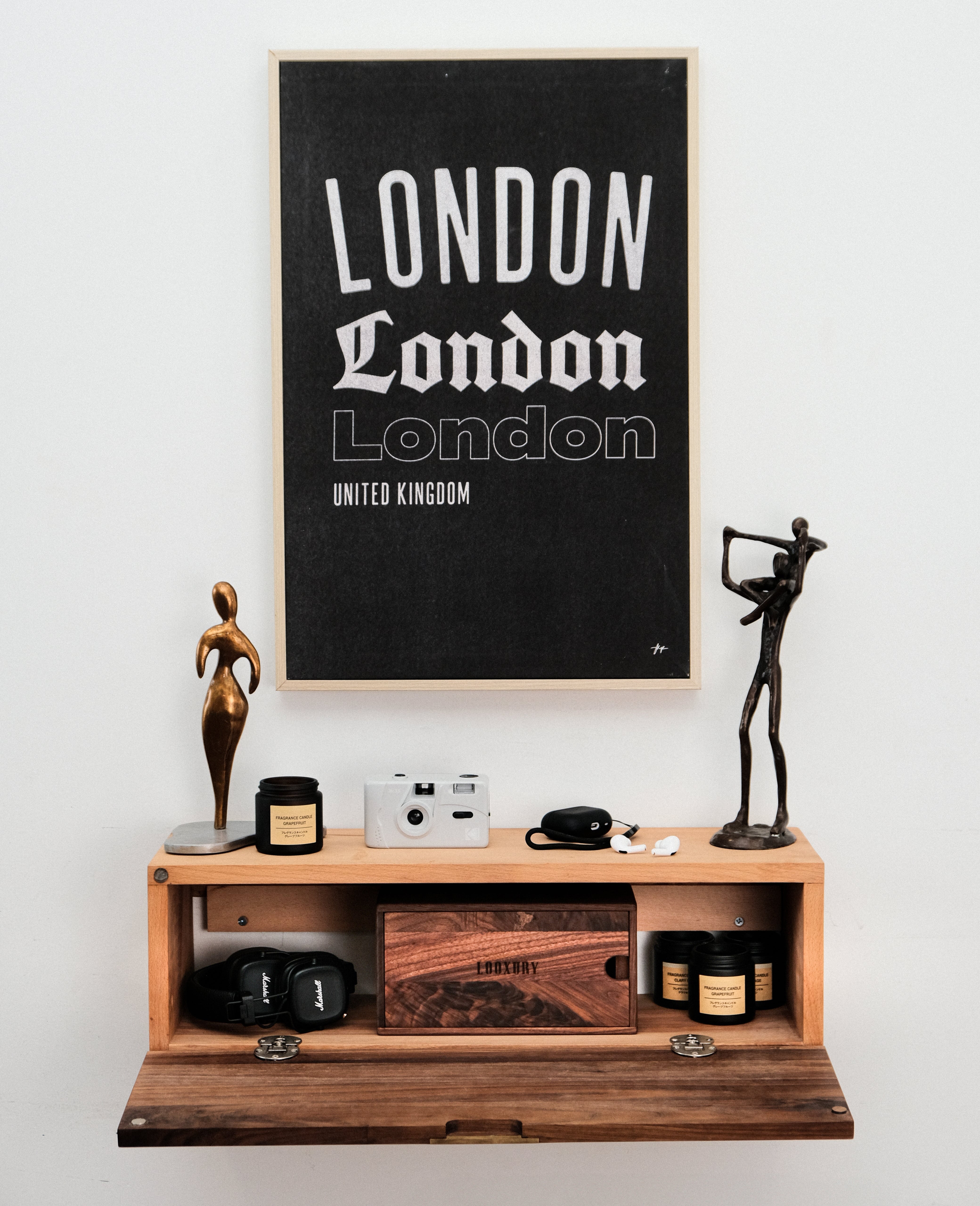 Every line is measured for balance, and every proportion is considered to achieve a silhouette that feels both timeless and modern. Subtle brass details are added as the finishing touch, lending warmth and refinement without overwhelming the cabinet’s minimalist clarity. Once mounted on the wall, the piece achieves its defining illusion, appearing to float effortlessly while remaining strong, enduring, and purposeful. The result is a cabinet that embodies a true union of function and artistry, designed to bring elegance and lightness into everyday living.
