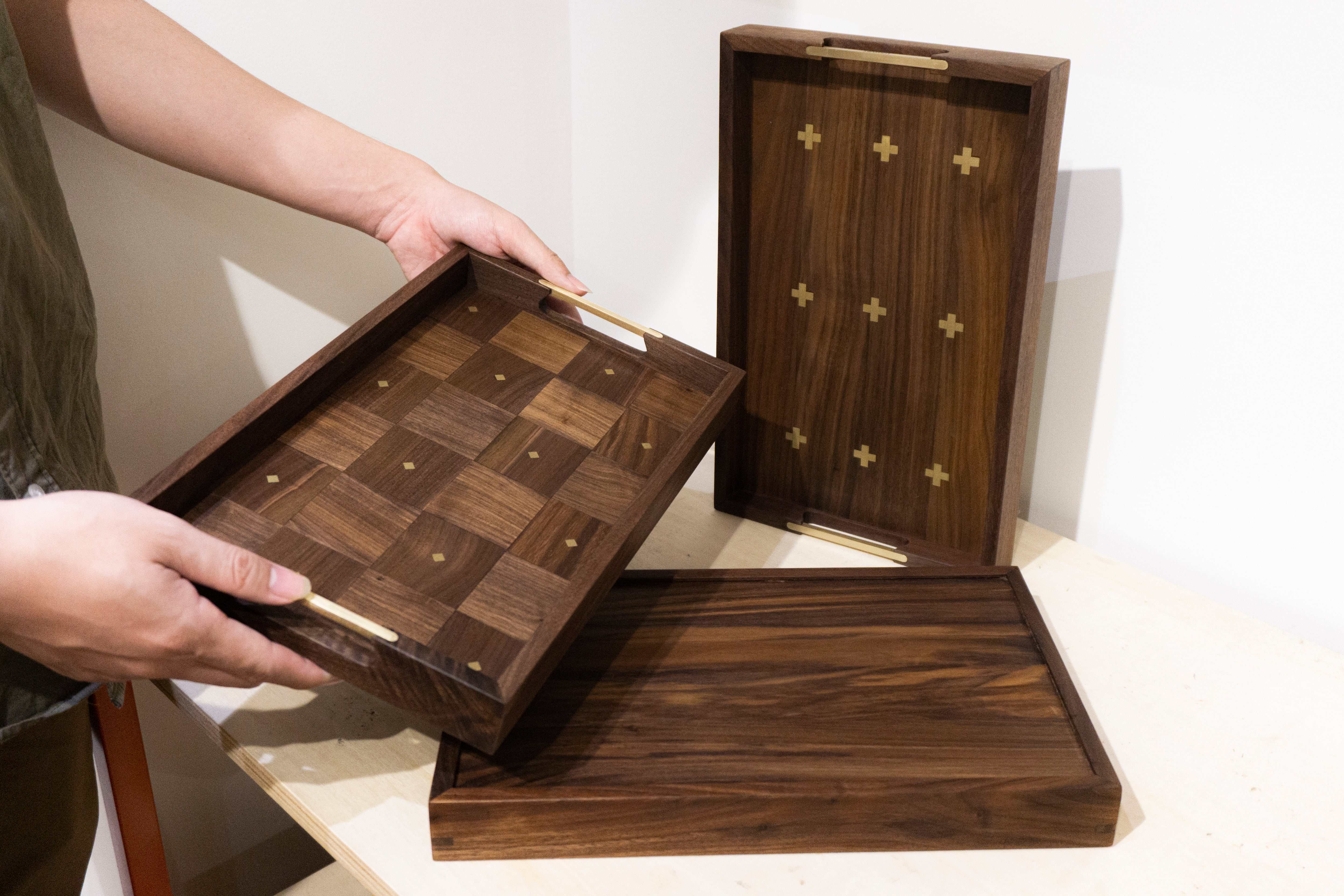 The Puzzle Collection- Dot, Plus, and Slash- is crafted using leftover walnut wood and reclaimed brass fragments once destined for disposal. By giving these materials a second life, each tray becomes a unique work of art, where grain, texture, and gleaming brass patterns transform waste into timeless design.